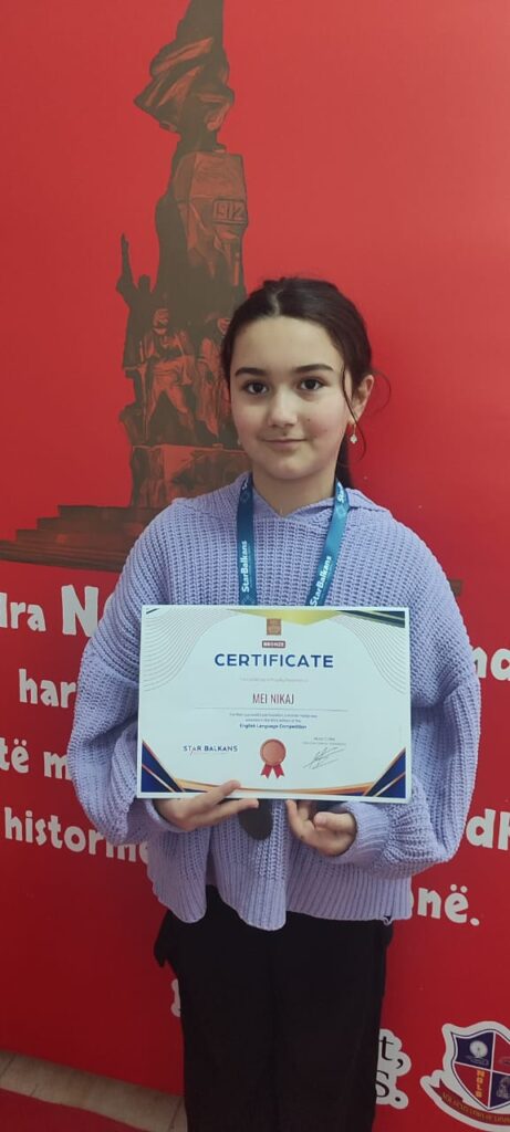 Një vajzë e qetë, por mjaft inteligjente e klasës së pestë, spikat me zërin e saj të ngrohtë e të bukur, duke regjistruar edhe këngë. Ajo është soliste në grupin që këndon himnin, por ka regjistruar bashkë me mësuesen e saj të talentuar këngët “Mora fjalë”, etj. Përveç këngës, Mei spikat në dashurinë e madhe që ka për pikturën, ku ka marrë disa çmime. Pjesë e klasës sportive, basketbolliste me moshat e Flamurtarit, shumë arritje do t’i shtohen.